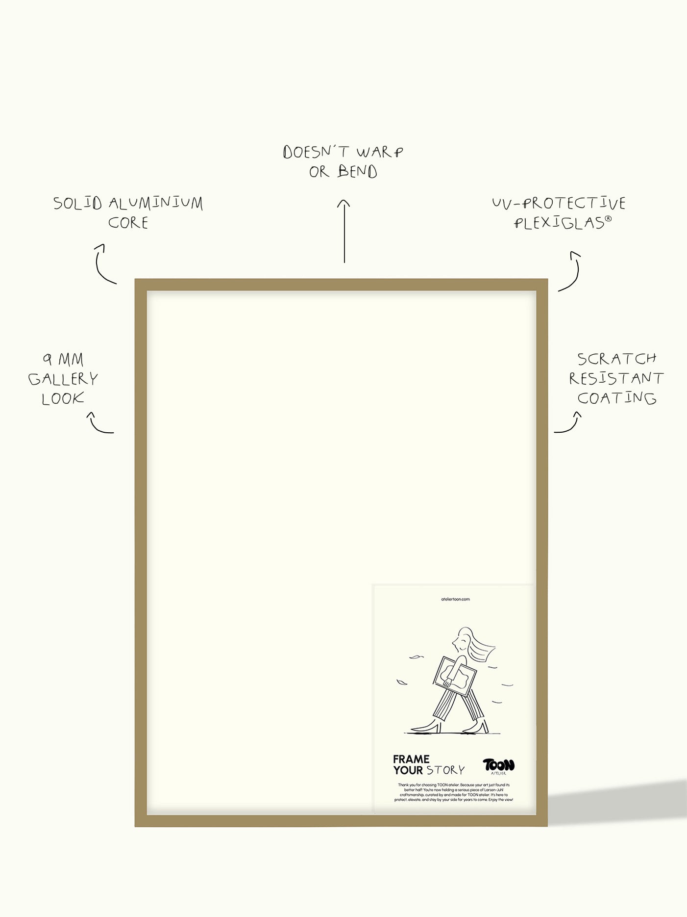 Geen kromme lijsten door vier-punts ophangsysteem/aluminium kern (vanaf 30x40cm)